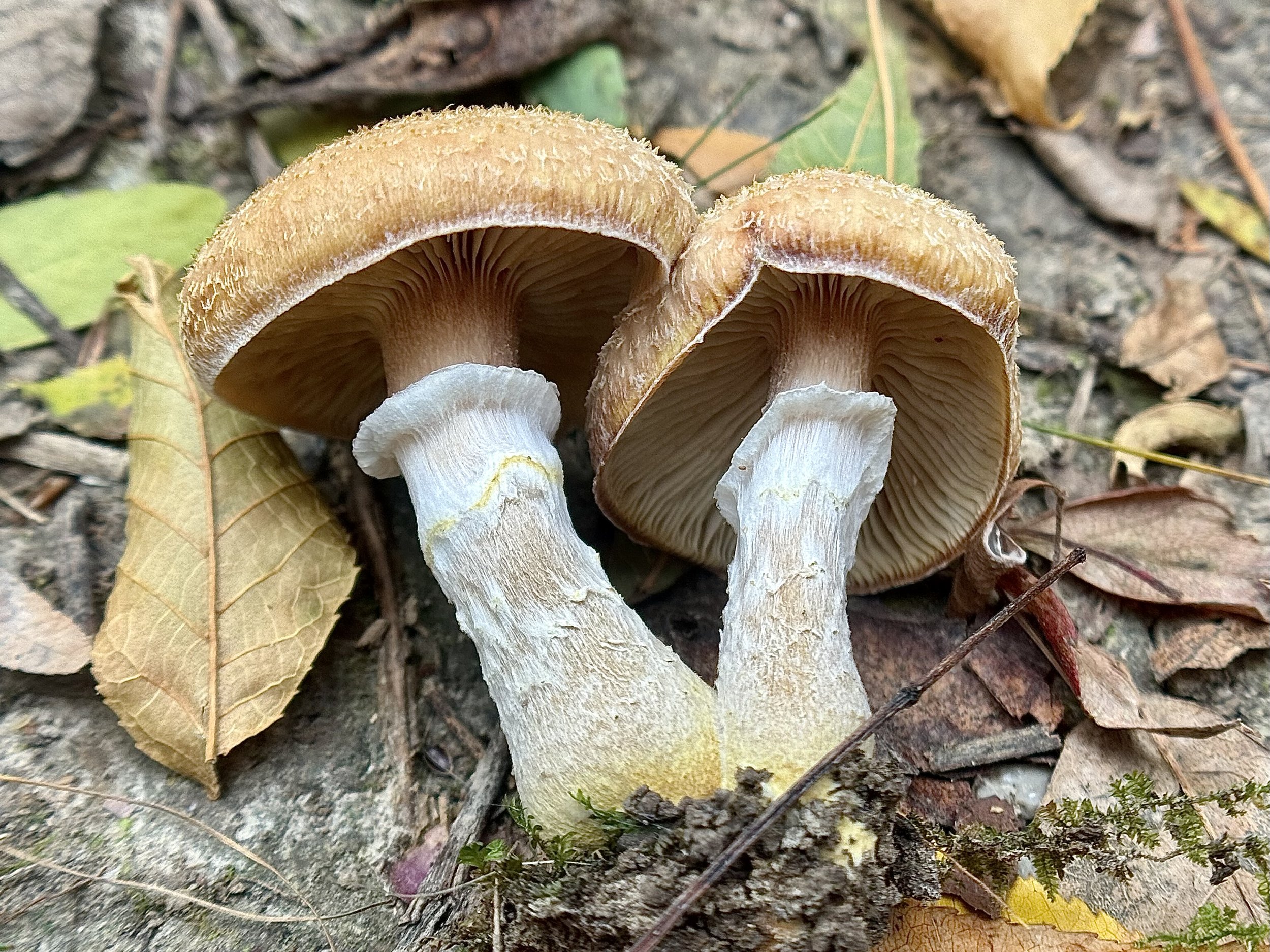 While Armillaria ostoyae has not (yet), to my knowledge, been documented in Iowa, it has been documented in neighboring states, especially those up north like Minnesota and Wisconsin, where conifer forests and hardwoods within conifer forests, like aspen and birch, are more plentiful [5]. Here in Iowa, other Armillaria species are abundant including Desarmillaria caespitosa (ringless honey fungus), the Armillaria mellea group (honey fungus), and Armillaria gallica (bulbous honey fungus) (photo 11), the species making up the original humungous fungus in Crystal Falls, Michigan. All honey mushrooms are edible when fully cooked and characterized by their honey yellow-brown color, white spore print, and attached or decurrent gills, with most species having rings (annuli). Our understanding of Armillaria in Iowa, however, is far from complete; greater genetic testing and research would expand our understanding of the genus. Given Armillaria’s capabilities of forming large, mobile clonal networks, we may very well have our own Humongous Fungus waiting below the surface.