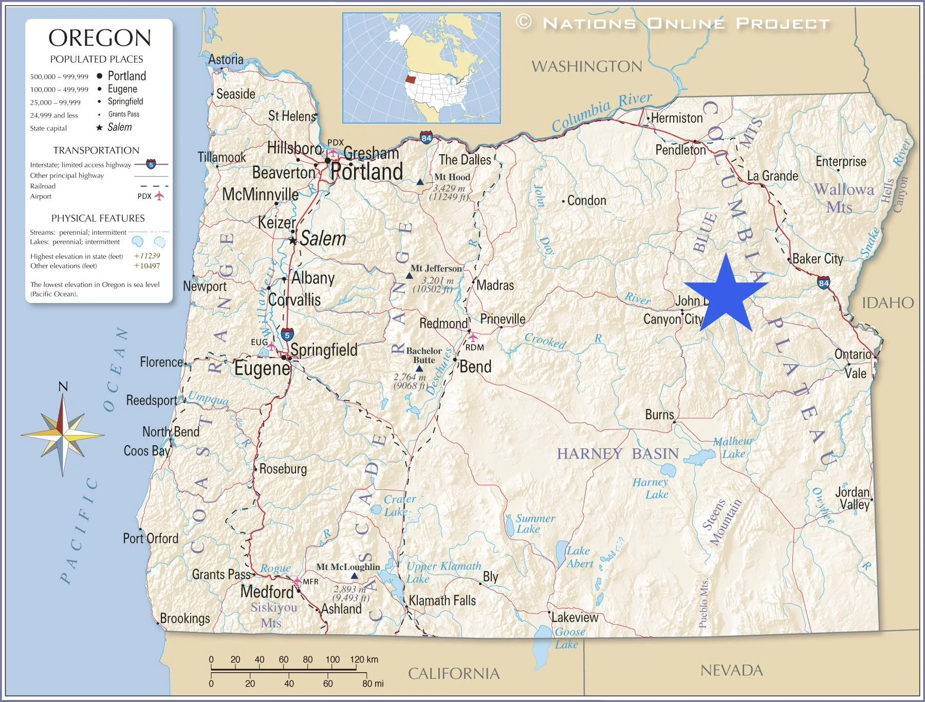 Map 1: Map showing the location of the Humongous Fungus in the Blue Mountains of eastern Oregon